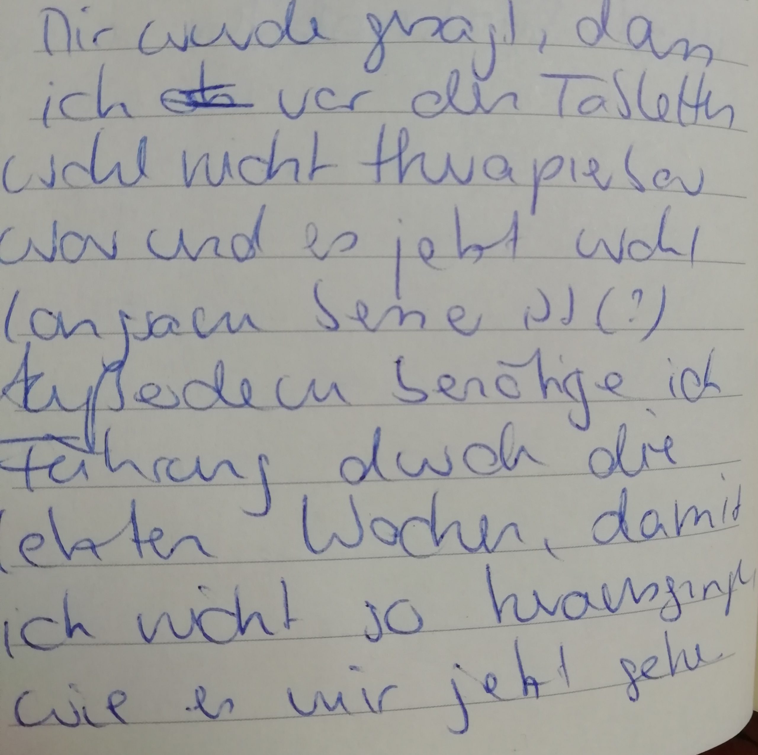 Tja, und nun stehe ich wieder auf 2 Wartelisten für Kliniken: Eine Tagesklinik und eine stationäre Klinik. Warum? Weil es mir nicht wirklich besser geht. Weil es nicht wirklich besser wird. Weil ich nicht weiter weiß und jeden Strohhalm ergreife, der sich mir bietet. Denn was soll ich sonst tun?